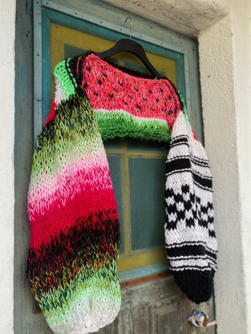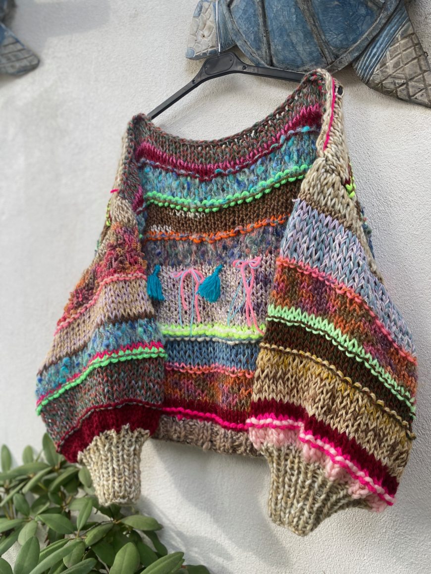 my aim for this year is to make enough money month to make a contribution to my family, to keep sourcing and reusing materials that others do not want, to push myself in my creativity and let go of stagnant habits in order to maximise new results and to spread colourful sustainable fashion pieces, knitted and sewn.