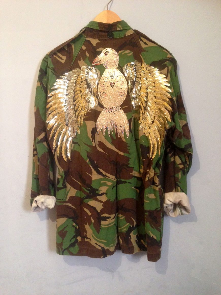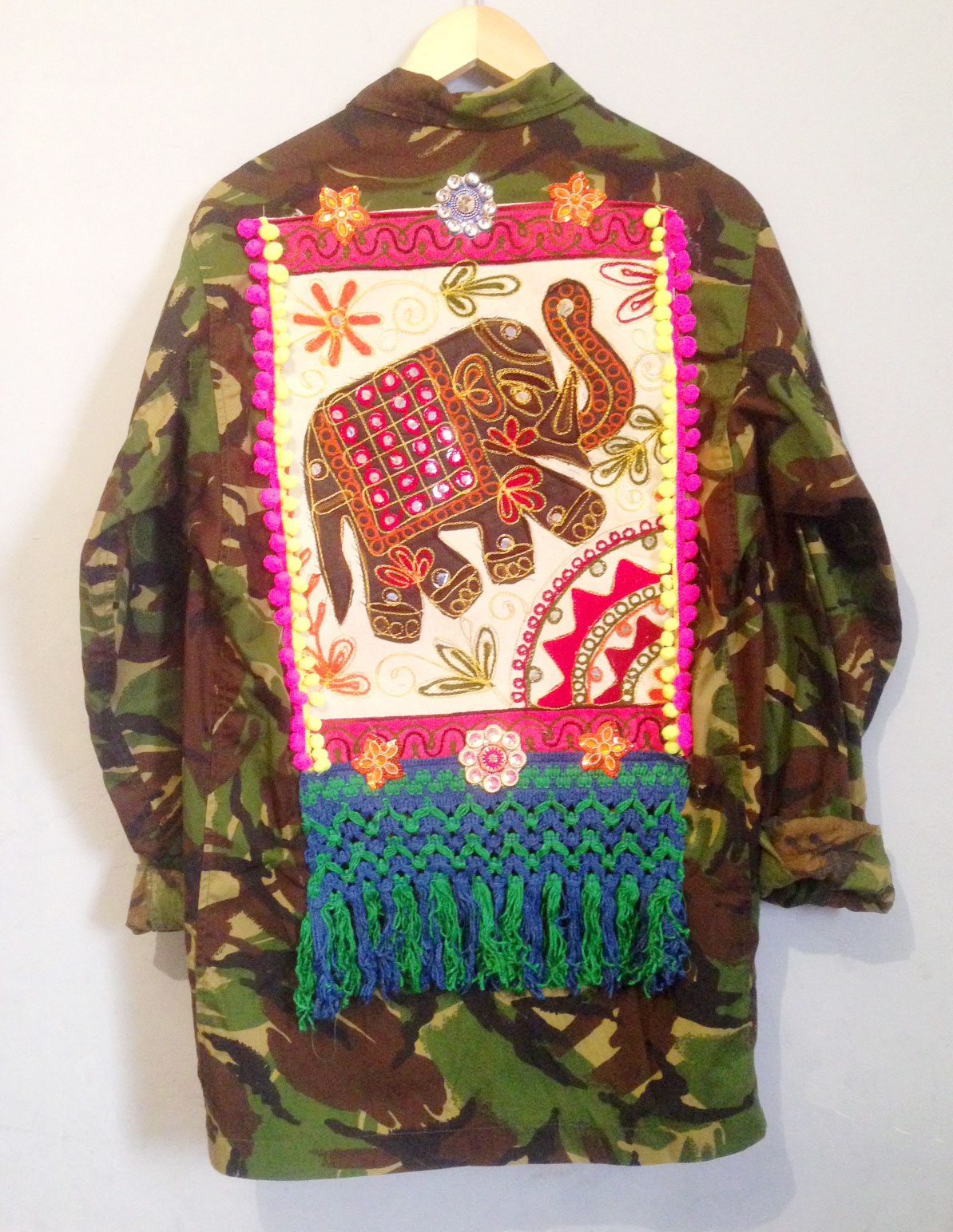 Love Camouflage? So do we. And perhaps not for the obvious reasons….All of our Camo jackets, parkas and shorts come from the army. They are authentic Ex-Army gear and this is why we like it- the clothes are of exceptional good quality. These Garments were made to last and withstand some very hard environments and be put to its ultimate wear test being worn by service men and women all over the globe. Our selection is from the 80’s and early 90’s and the garments come from a variety of various departments. WE have blue jackets and shirts from the RAF, as well as their all in one boiler suits we turn in to cropped jackets, funky pants and festival gear. We have lightweight DPM jackets and heavier Parka Coats which we adorn and embellish in our trademark Freedom of Ztyle Fashion. But we also use their buttons and trims and threads- things you would not necessarily think of. And why? because of the quality. WE aim to provide you with garments to last you for a long time so even if all materials are re-cycled / re-used, we make sure the quality is at the top.
